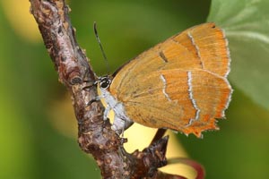 Bei Thecla betulae sind die einschlägigen Organe der Raupen, welche zur Anlockung der Ameisen dienen, anscheinend reduziert (Fiedler 1988). Trotzdem kann diese Art anscheinend fakultativ kommensalische Beziehungen zu Ameisen haben (Sanetra et al. 2015) [Martin Albrecht im Forum].