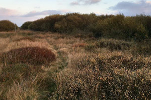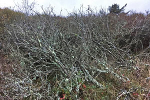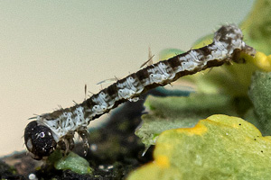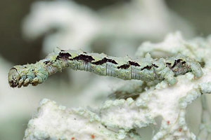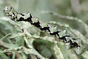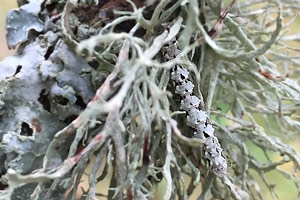 Ausgeprägte Strauchflechtenvorkommen gibt es nur an nährstoffarmen, feuchten Stellen. Auch über die Luft dürfen nur wenige Nährstoffe transportiert werden. Als Lebensraum kommen heutzutage also vor allem größere Dünenbereiche fernab der industriellen Landwirtschaft infrage. C. lichenaria habe ich bisher in feuchten Weidengebüschen vor allem an halbschattigen Stellen gefunden - also nicht tief drin im Gebüsch (wo es schattig ist und die Flechten wenig Fotosynthese betreiben können) und meist auch nicht ganz außen in den Randbereichen (wo es recht windig sein kann). Am besten konnte ich die Raupen ab der Dämmerung mit Hilfe einer Stirnlampe finden. Besonders die jungen, eher grünlichen Raupen saßen abends extrem exponiert auf den Spitzen der Flechten und konnten so leicht gefunden werden. Auch tagsüber konnte ich Raupen finden, allerdings in geringerer Anzahl als nachts. Die etwas älteren, stärker gemusterten Raupen saßen oft nicht so stark exponiert. Ich fand sie oft dichter an den Weiden-Ästen oder dichter angeschmiegt an den Flechten.