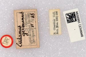 1-3: Syntypus ♂, Daten siehe Etiketten (fot.: Nick V. Grishin, Fotos bearbeitet: Michel Kettner), © Images copyright Trustees Natural History Museum, used with permission.