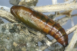 1: Kroatien, Podgora, leg. Raupe 27. April 2017 an Psoralea bituminosa, Puppenfoto 3. Mai 2017 (leg., cult. & det. durch Falterschlupf Bob Heckford & R.J. Beavan, Foto Bob Heckford)