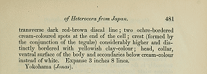 - Erstbeschreibung: Butler, A. G. (1877): Descriptions of new Species of Heterocera from Japan. Part I. Sphinges and Bombyces. — The Annals and Magazine of Natural History, Including Zoology, Botany, and Geology. Fourth Series 20: 473-483. London (Taylor and Francis).