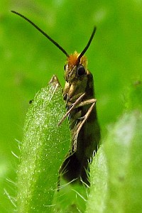 Äusseres Drittel des Vorderflügels ohne matt goldene Zeichnung; Kopf schwarz.