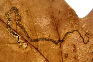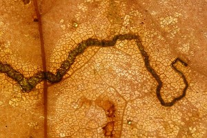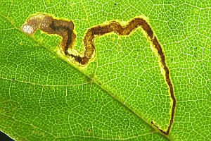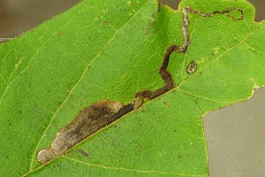Die Kotlinie von Stigmella speciosa ist ziemlich variabel; mehr Gewicht hat die Wirtspflanze (an Berg-Ahorn, Acer pseudoplatanus beispielsweise kommt nur Stigmella speciosa infrage). [Tina Schulz, nach Erik van Nieukerken]