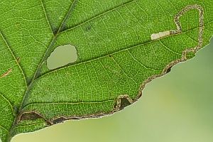 5: Deutschland, Niedersachsen, Stadt Rodenberg, Ortsteil Algesdorf, größeres Feldgehölz mit ausgetrocknetem Teich im Zentrum, 70 m, leg. Minen an Alnus glutinosa (Schwarz-Erle) 11. Oktober 2022, Falterschlupf 15. Juni 2023 (cult., det. & fot.: Tina Schulz)Forum