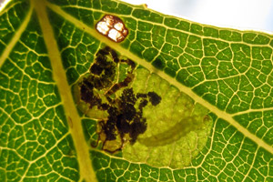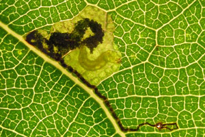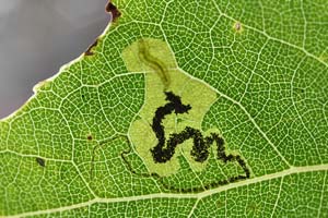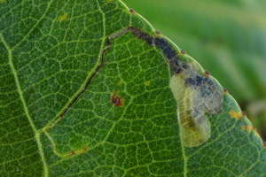 In Blättern von Schwarzpappel (Populus nigra) kommen in unserem Gebiet nur 2 Nepticuliden-Arten vor: Ectoedemia hannoverella und Stigmella trimaculella. Die ganz unterschiedlichen Minen lassen sich anhand der Bilder sofort unterscheiden.