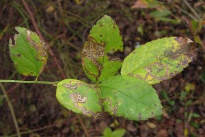 Huemer (1988: 128) trug zusammen: "F: Rosaceae: Rosa L., R. agrestis SAVI, R. arkansana PORT. et COULT., R. arvensis HUDS., R. canina L., R. centifolia L., R. glauca POURR. non. VILL., R. rubiginosa L., R. rugosa THUNB., R. tomentosa SM., R. vosagiaceae DESP., in den Alpen R. pendulina L., auch Sanguisorba minor SCOP. und S. officinalis L., sowie Potentilla caulescens TORN. werden als weitere Substrate vermutet, können aber für das UG derzeit nicht bestätigt werden (BUHR, 1936; HERING, 1957; NIEUKERKEN in litt; JOHANSSON in litt; HUEMER, 1985)."