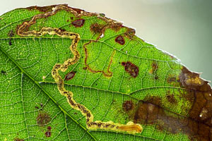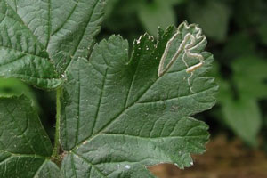 Die Liste der Raupennahrungspflanzen von Johansson et al. (1990) ist recht bunt: "Rubus fruticosus, Rubus caesius and closely related Rubus spp., Fragaria, Geum and Agrimonia, in Greece also on Geranium versicolor." Letzteres verwundert doch sehr, scheint aber abgesichert zu sein. So ist auf [bladmineerders.nl] zu lesen: "Occasionally observed on Geranium endressii, versicolor (Laštuvka & Laštuvka, 1997a; Keith Palmer in litt., 2009); in fact a bit too frequently to put it aside as simple xenophagy."