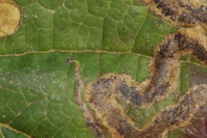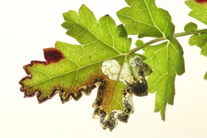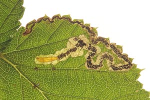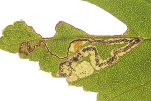 Eine Abbildung (Farbfoto) der Mine - inkl. Vergleich mit einer Mine einer an der gleichen Pflanze lebenden Fliege der Gattung Argyromyza - findet sich bei Segerer (2001), der darauf hinweist, dass die Minen Anfang September nur in Wiesen zu finden sind, die nicht alljährlich gemäht werden.