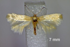 Die Raupen sind extrem schwer zu finden, da sie keine äußerlich gut sichtbaren Spuren an ihren Pflanzen hinterlassen. Laštůvka & Laštůvka (2005: 9) können mitteilen: "Biology and habitat (fig. 20). The larva develops in the stem of Corothamnus decumbens (Durande) Spach. It does not mine but lives inside the stem where it makes a spiral gallery around the pith. Usually the gallery is not visible on the stem from outside and therefore the larvae are very difficult to find. A small and indistinct gall develops in several cases only if the larva leaves the stem (and/or the stem dries up). The species was found on river alluvials and on southern or southwestern slopes on limestone with xerothermophilous or subxerothermophilous herbaceous and shrub communities".