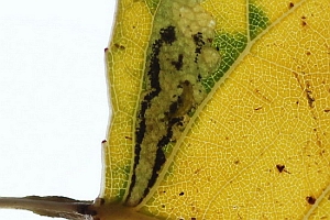 Nach Johansson et al. (1990) - und den oben gezeigten Minenbildern - leben die Raupen der in Mitteleuropa weit verbreiteten und relativ häufigen Art in Blättern der Schwarzpappel (Populus nigra) und der Kanadischen Hybridpappel (Populus x canadensis). Nieukerken et al. (2010: 22) nennen genau die beiden gleichen Pflanzen.