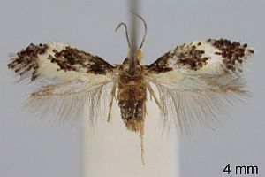 Der Autor der Erstbeschreibung (Nieukerken 1985: 46) beginnt seine Diagnose mit den Worten "easily recognised by white thorax".