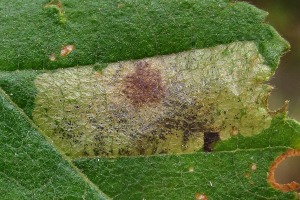 Ectoedemia occultella hat eine für eine Nepticulidae ungewöhnliche Minenform: rundlich, ohne Gang am Anfang, mit dunklem Zentralfleck in der Mitte, unter dem die Raupe in Fresspausen ruht und auch im Durchlicht nicht erkennbar ist. Die blattunterseits anklebende Eischale verät, dass es sich um eine Nepticuliden-Mine handelt. Nach Hering (1954) und Laštůvka (1997) eine Generation, Raupen im Oktober und November, nur an Birken (Betula sp.).
