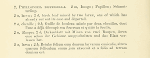 Schon Stainton (1873) beschreibt die Raupe und ihre spezielle Lebensweise an Birke.