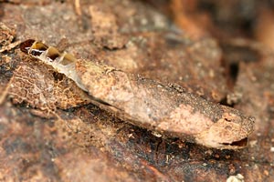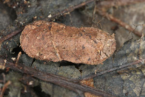Ende Oktober waren die im oben gezeigten Lebensraum gefundenen Raupen alle noch aktiv. Die flachen Blattgehäuse sind vorn und hinten offen und an beiden Seiten nur je zu einem Drittel der Länge zugesponnen (Raupenbilder 1 und 2).