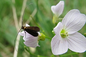 Etwas salopp ausgedrückt: kleine, dunkle Adeliden zur Zeit der Blüte von Wiesenschaumkraut, Knoblauchshederich und Arabis und in der Umgebung dieser Blüten fliegend, da ist die Wahrscheinlichkeit, dass es etwas anderes als Cauchas rufimitrella sein könnte, äusserst gering.