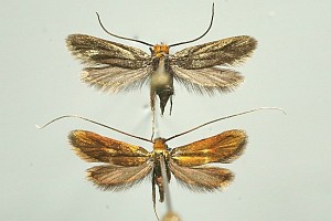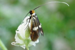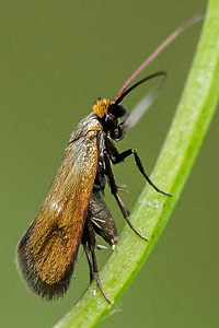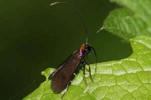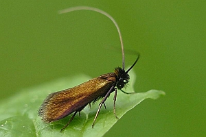 - Fühler schwarz (bei N. metallica- und Adela reaumurella-Männchen viel länger, mindestens gegen die Spitze weißlich; bei den Weibchen der beiden Arten Fühlerspitzen deutlich weiß).