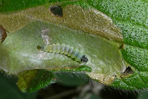 Die Raupe miniert ganz überwiegend an Kratzbeeren, daneben aber auch regelmäßig an Gewöhnlichem und Großem Odermennig. Für die Himbeere kenne ich keine konkrete Meldung, sie dürfte aber plausibel sein. Dringend zu klären ist hingegen die Rolle von Brombeeren als Raupennahrung - handelt es sich hier ganz überwiegend um falsch bestimmte Kratzbeeren?