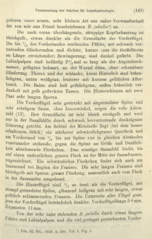 Nach dem Titelblatt des Jahrgangs wurden die Hefte 6-9 - mit der Beschreibung der Art - am 31. Dezember 1919 herausgegehen, nur das Heft 10 und der Gesamtband erst 1920. Abweichend von Sobczyk (2011) und Arnscheid & Weidlich (2017) sehen wird daher 1919 und nicht 1920 als Jahr der Erstbeschreibung an.
