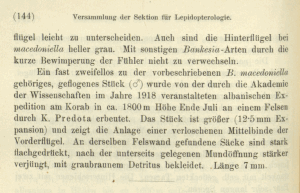 - Erstbeschreibung: Rebel, H. [Vors.] (1919): Bericht der Sektion für Lepidopterologie. Versammlung am 4. April 1919. — Verhandlungen der zoologisch-botanischen Gesellschaft in Wien 69: (136)-(144).