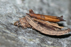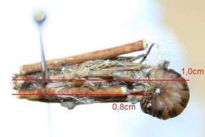 Das Weibchen ist daran zu erkennen, dass das erste Brustglied und der Kopf dunkelbraun gefärbt sind, bei Psyche crassiorella hingegen hellcremig. Beim Männchen müsste man die Anzahl Fühlerglieder zählen. (Weniger als 21 = Psyche casta, mehr = Psyche crassiorella) [Daniel Bolt] und [Oliver Rist].