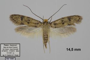 1: ♀, Italien, Sizilien, Trapani, Umgebung Zarbo di Mare, 132 m, 38.135446, 12.784047, 24. August 2020, am Licht (leg., gen. det. & fot.: Friedmar Graf), Referenz: Gaedike, ME 9 Tineide 2, ♀ Gen. Fig. 237Forum