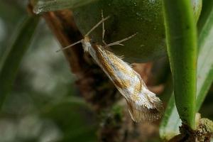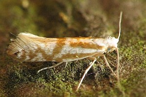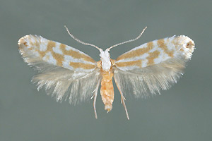 - Argyresthia dilectella (Zeichnungselemente dunkler, braungelb, Musterung weniger deutlich erkennbar)