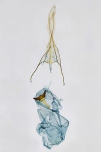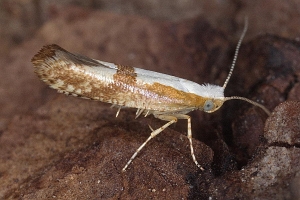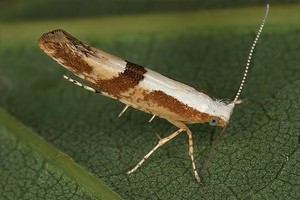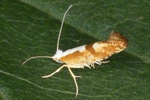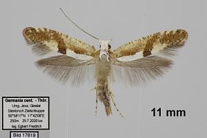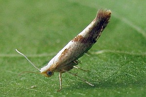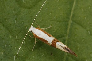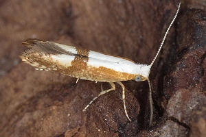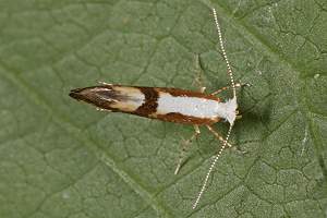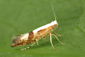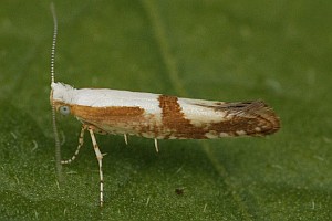 • Argyresthia bonnetella (Braunfärbung spärlicher, mehr in Flügelmitte konzentriert, was dem Falter ein helleres, weiss-braunes Aussehen verleiht; braunes Querband schmaler und schräger zum Apex verlaufend)