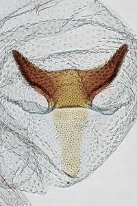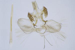 Merkmal: Goldbraune Art mit auffallend weisser Innenrandstrieme, die durch ein breites, braunes Querband unterbrochen wird. Sehr ähnliche Art:
