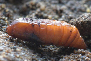 Am 17. Mai 2013 wurde ein begattetes Weibchen eingefangen - es legte im Insektarium bereitwillig an der Pflanze ab, auf denen im Garten fast alle Falter herumsaßen, Blättern der Deutschen Schwertlilie. Dann begann eine langwierige Zucht. Die L1- und L2-Raupen minierten zunächst in den Blättern, die L3-Raupe dann im Rhizom (Wurzelstock) der Schwertlilie. Die L4-Raupe überwinterte dort und verließ das Rhizom Mitte April, um sich daneben im Boden zu verpuppen. Erst nach gut einem weiteren Monat schlüpften die Falter.