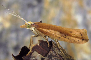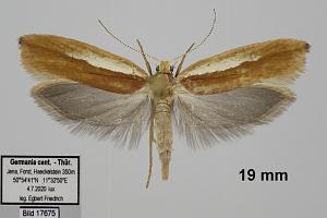 Eine kleinere und sehr veränderlich gefärbte Art ohne den für die Ypsolopha-Arten charakteristisch sichelförmig gestalteten Flügelapex. Typischerweise am Vorderrand der Vorderflügel mit weißlicher Strieme, welche zum Apex hin in die braune Grundfärbung übergeht und nach hinten oft scharf weiß begrenzt ist. Diese Strieme kann aber auch fehlen oder durch eine zusätzliche schwarze Mittellinie von der Flügelbasis bis zum Apex kräftig hervorgehoben werden. (Text: Rudolf Bryner)
