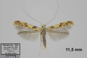 - Šumpich, J., Liška, J., Jakeš, O., Sitek, J., Skyva, J., Feik, V., Marek, J., Vávra, J., Laštůvka, Z., Vítek, P., Bartas, R., Čelechovský, A., Dobrovský, T., Dvořák, I., Maršík, L., Mikát, M., Šafář, J., Vodrlind, B., Žemlička, M., Dvořák, M. & V. Hula (2009): Faunistic records from the Czech Republic – 287. Lepidoptera: Nepticulidae, Tineidae, Gracillariidae, Yponomeutidae, Oecophoridae, Elachistidae, Coleophoridae, Blastobasidae, Gelechiidae, Cossidae, Tortricidae, Epermeniidae, Pyralidae, Crambidae, Geometridae, Noctuidae, Nolidae, Lymantriidae. — Klapalekiana 45 (3-4): 267–279 [PDF auf entomologicalservice.com].