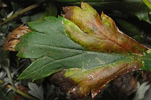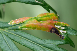 2: Deutschland, Sachsen, Doberschütz (bei Eilenburg), Waldrand, minierend an Beifuß (Artemisia vulgaris), 2. Oktober 2008 (Foto: Heidrun Melzer), leg., cult. & det. Heidrun Melzer