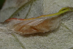 3: Verpuppungsgespinst, Deutschland, Sachsen, Doberschütz (bei Eilenburg), Waldrand, leg. Raupe 2. Oktober 2008 (Studiofoto am 7. Oktober 2008: Heidrun Melzer), cult. & det. Heidrun MelzerForum