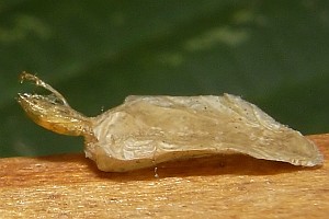 4: Gespinst mit Exuvie: Deutschland, Sachsen, Doberschütz (bei Eilenburg), Waldrand, leg. Raupe 2. Oktober 2008, e.l. 10. März 2009 (Studiofoto: Heidrun Melzer), cult. & det. Heidrun MelzerForum