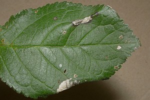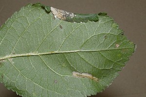 1-4: (1-2: Blatt mit Jugendmine und kleinem Blattumschlag von oben und unten), (3: Blattumschlag und Jugendmine (links unter Mittelrippe)), (4: großer Blattumschlag), Deutschland, Thüringen, Umgebung von Maua bei Jena, ca. 350 m, an Schlehe (Prunus spinosa), 24. August 2009 (Fotos: Heidrun Melzer), det. Heidrun MelzerForum