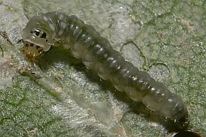6-7: Deutschland, Sachsen, Dübener Heide, Umg. Falkenberg, Raupe an Schlehe (Prunus spinosa) 9. September 2012, e.l. 16. März 2013 (leg., cult., det. & Fotos: Heidrun Melzer)