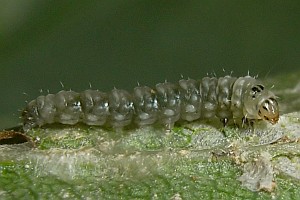 4: halb erwachsen (3 mm), Daten wie Lebendfalterfoto 5 (Foto am 12. Juni 2010: Peter Buchner)