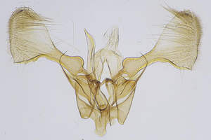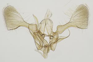 1: ♂, Finnland, Åland, Föglö, Raupe 2006 auf Prunus spinosa, e.l. (fot.: R. Siloaho), leg. M. Mutanen