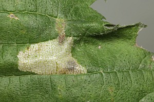 Der jetzige Fund bestätigt die unsicheren alten Angaben. Au am Rhein [TK 7015] liegt knapp 20 km südlich von Karlsruhe. Die Fundstelle befindet sich in der rezenten Rheinaue, ca. 50 m von einem aktiven Altarm entfernt und zuletzt im September bis an die unteren Äste in 1,5 m Höhe überflutet. Das betroffene Blatt fand sich 10-20 cm oberhalb des Hochwassergenists. Bei dem Wald handelt es sich um einen Pappelforst mit Resten von Arten des Eichen-Ulmen-Auwaldes. Am 13.10.2007 wurden in der rezenten Rheinaue 2 km nördlich des Nachweisortes einige schon verlassene Phyllonorycter-Minen gefunden, eine davon mit noch erkennbarer Exuvie. Da die anderen sich an Ulmen entwickelnden Arten der Gattung alle im Puppenstadium überwintern (sollen), spricht einiges dafür, dass es sich auch hier um P. agilella handelte. P. agilella soll in zwei Generationen im Juni / Juli bzw. ab September / Oktober fliegen, wobei die im Herbst schlüpfenden Falter überwintern.