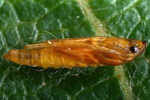 Die Art scheint insgesamt ein breites Spektrum an Roasaceae (Maloidea) zu nutzen. Birken scheinen im Norden des Verbreitungsgebiets eine Rolle zu spielen. Der Sanddorn erlangt sicher nur maximal lokal Bedeutung, Buche und Erle sind Beispiele für seltene Xenophagie. Die namengebende Hasel wird nicht genutzt - entsprechende Angaben beruhen auf Verwechslung. Angaben zu Schneebeere und Ulme sind sehr fraglich.
