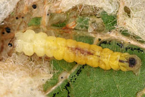 Die Art miniert unterseitig an Sal-Weide (Salix caprea) [Bradley, Jacobs & Tremewan (1970)]. Auch sonst ist die Sal-Weide meistgenannte Nahrungspflanze, seltener werden andere breitblättrige Weiden wie die Ohr- und die Grau-Weide genannt; aus Sizilien wird zudem Salix pedicellata angeführt und Deschka (2014) meldet erstmals die Schlucht-Weide. Ob eine Angabe zur schmalblättrigen Silber-Weide aus Polen sicher ist, kann nicht beurteilt werden.