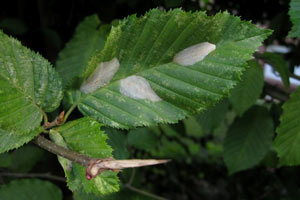 Die Art miniert oberseitig an Hainbuche (Carpinus betulus) [Bradley, Jacobs & Tremewan (1970)], was im riesigen Verbreitungsgebiet der Art vielfach belegt ist. Eine schon etwas ältere Angabe aus Bulgarien bezieht sich auf die Hopfenbuche; Meldungen von Hasel (Corylus) sind falsch.