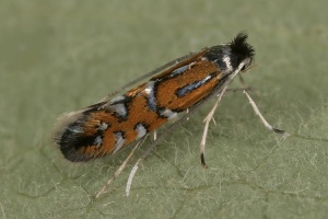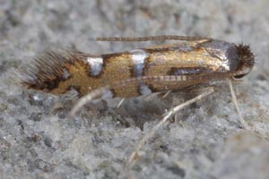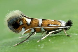 1: ♂, Schweiz, Neuchâtel, Cornaux, 470 m, 5. November 2003, unterseitige Blattmine an Erstjahresschössling von Quercus petraea (leg., cult. e.l., det. und Foto: Rudolf Bryner)Forum