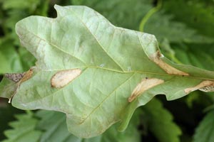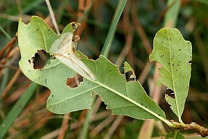 6-8: befallene Eichenschösslinge und unterseitige Mine, Deutschland, Sachsen, Waldgebiet bei Dubring, 131 m, 5. Oktober 2014 (Fotos: Friedmar Graf)Forum