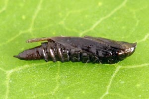 4: Exuvie, Schweiz, Neuchâtel, Cornaux, 480 m, leg. 23. Oktober 2005, in Zimmertemperatur: 29. Januar 2006, e.l. 20. Februar 2006 (Foto: Rudolf Bryner), cult. & det. Rudolf Bryner