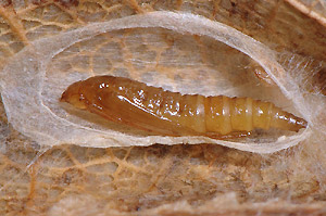 1-2: Puppengespinst und Puppe aus unterseitiger Mine an Quercus petraea: Schweiz, Bern, La Neuveville, 800 m, 18. Oktober 2006 (Studiofotos: Rudolf Bryner), det. Rudolf Bryner