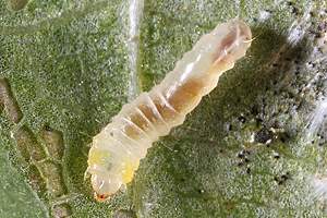 1: Raupe aus unterseitiger Mine an Quercus petraea: Schweiz, Bern, La Neuveville, 800 m, 18. Oktober 2006 (Studiofoto: Rudolf Bryner), det. Rudolf Bryner