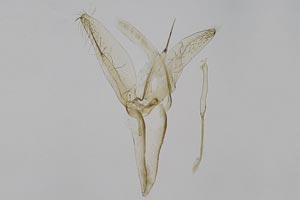 1: ♂, etwas abgeflogenes Exemplar, Schweiz, Fribourg, Muntelier, 430 m, 24. Mai 1995, Lichtfang (leg., det. und Foto: Rudolf Bryner)Forum