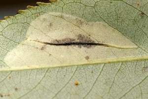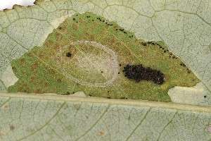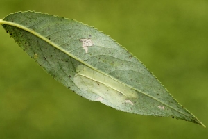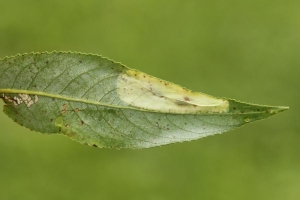 1-2: Österreich, Niederösterreich, Schwarzau am Steinfeld, Mine an Bruch-Weide (Salix fragilis) leg. 22. September 2005, Foto 25. September 2005 (Fotos: Peter Buchner), det. Peter Buchner (1: intakte, 2: nach Schlupf aufgerissene Mine (20 mm), daraus der unter 3 gezeigte Falter)Forum