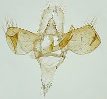 1: Genitalpräparat des unter Lebendfoto 1 abgebildeten ♂: Spanien, Catalunya, Tarragona, Coll de la Mola, 450 m, 9. August 2014 (leg. Matthew Gandy, det., Präparation & Mikro-Foto Peter Buchner)